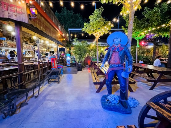 Plongez dans l'ambiance envoûtante du Far West américain au cœur du Luna Park du Cap d'Agde : L’Eldorado Grill, le repaire des cowboys assoiffés de saveurs authentiques.